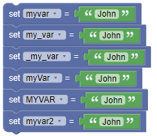 1st_name = "John" last-name = "Doe" Full Name = "Jane Doe" _address = "123 Main St"